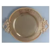 Stylish Golden Round Serving Metal Tray With Antique Design and Handle Home Decoration Kitchen Were Christmas Party